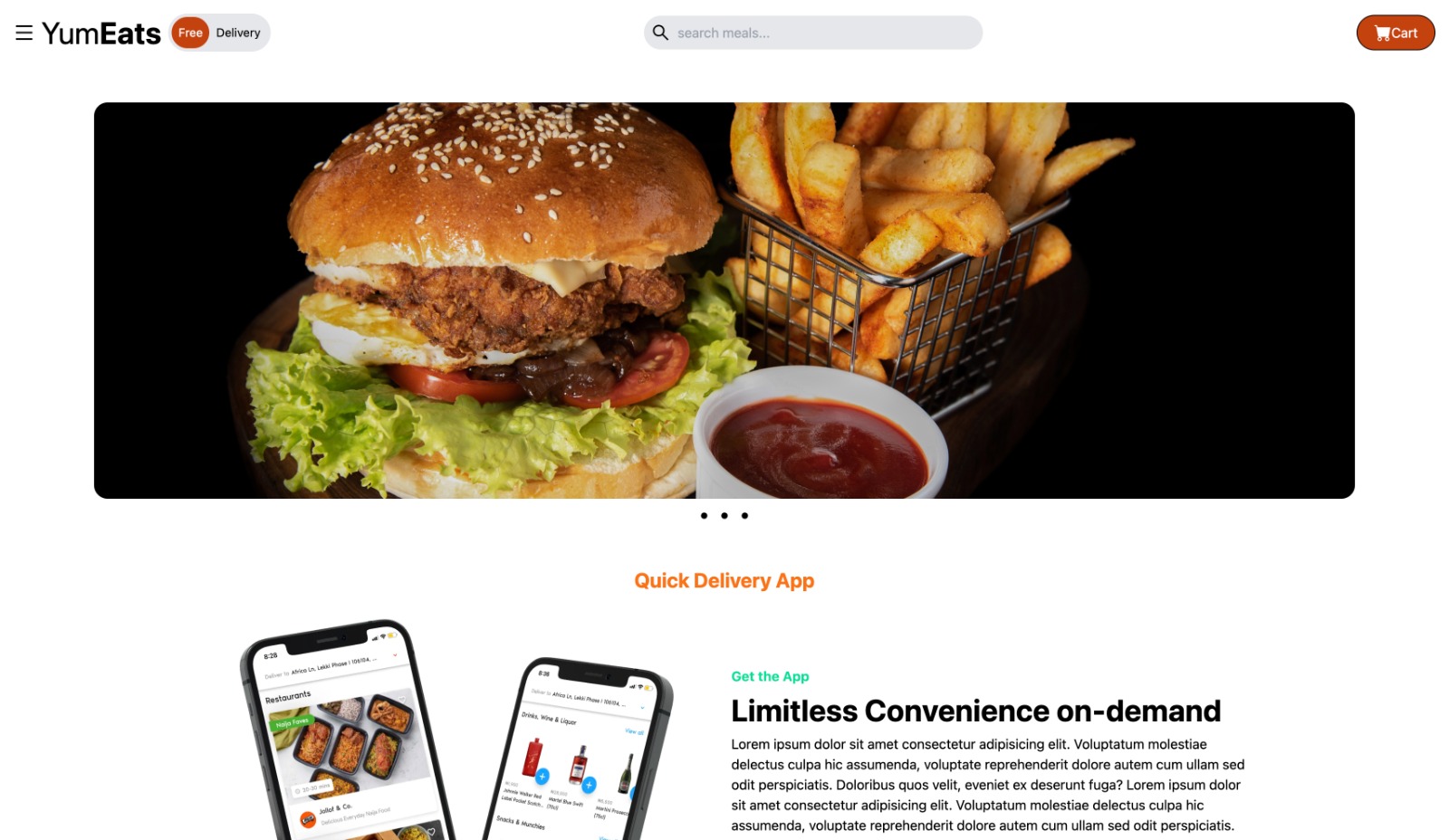 • Developed the responsive web application "Yum Eats" using React JS and Tailwind CSS. • Implemented modern design principles to enhance the user experience, resulting in a visually appealing and user-friendly interface. • Utilized React JS for dynamic content rendering and Tailwind CSS for efficient and responsive styling.